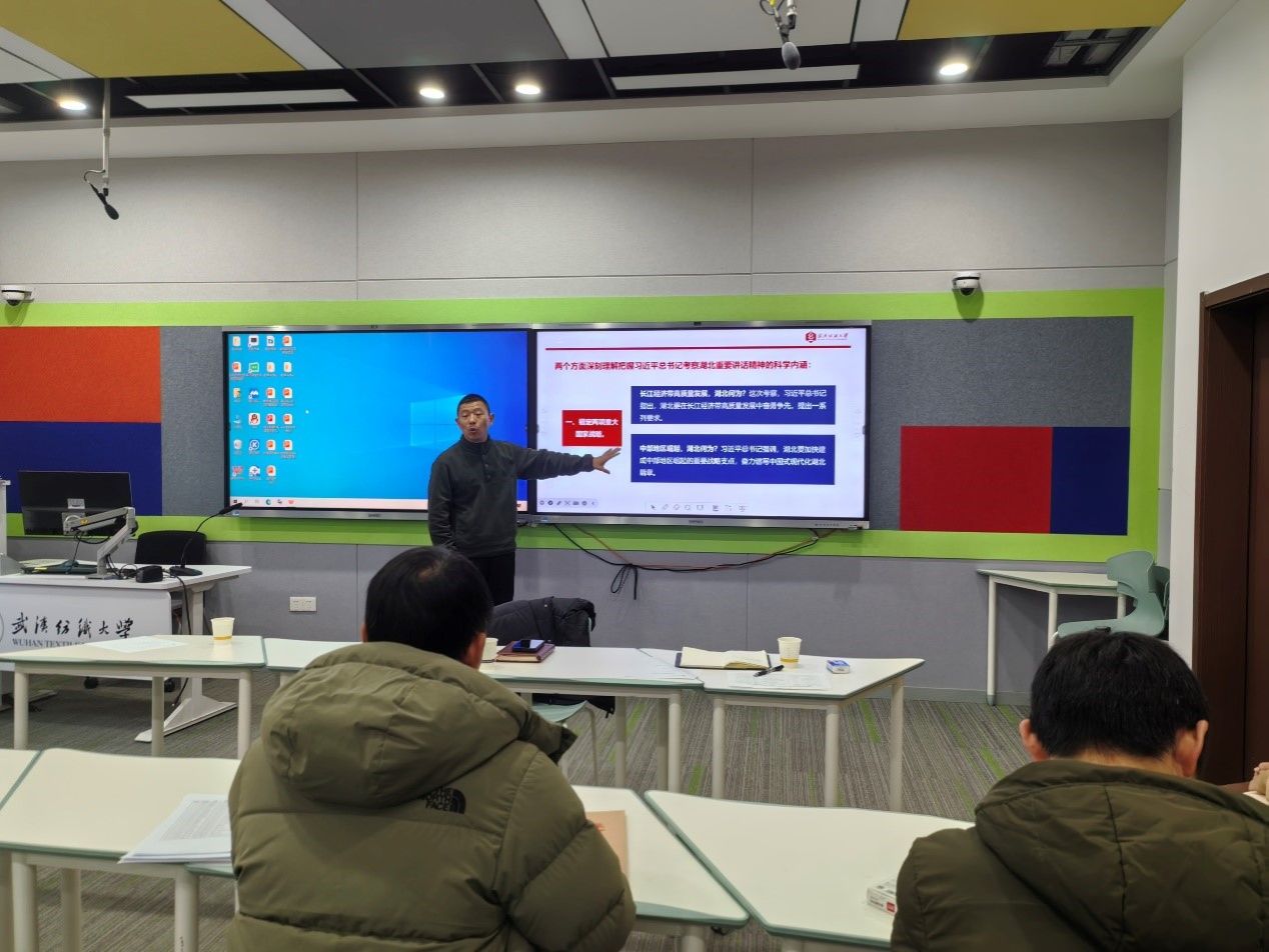 最后,李楠书记强调要切实把学习贯彻习近平总书记考察湖北重要讲话精神激发出来的巨大热情,转化为担当实干的具体行动,转化为做好当前各项工作的具体措施,转化成师生看得见、摸得着的工作成效,为湖北的高质量发展贡献纺大力量。