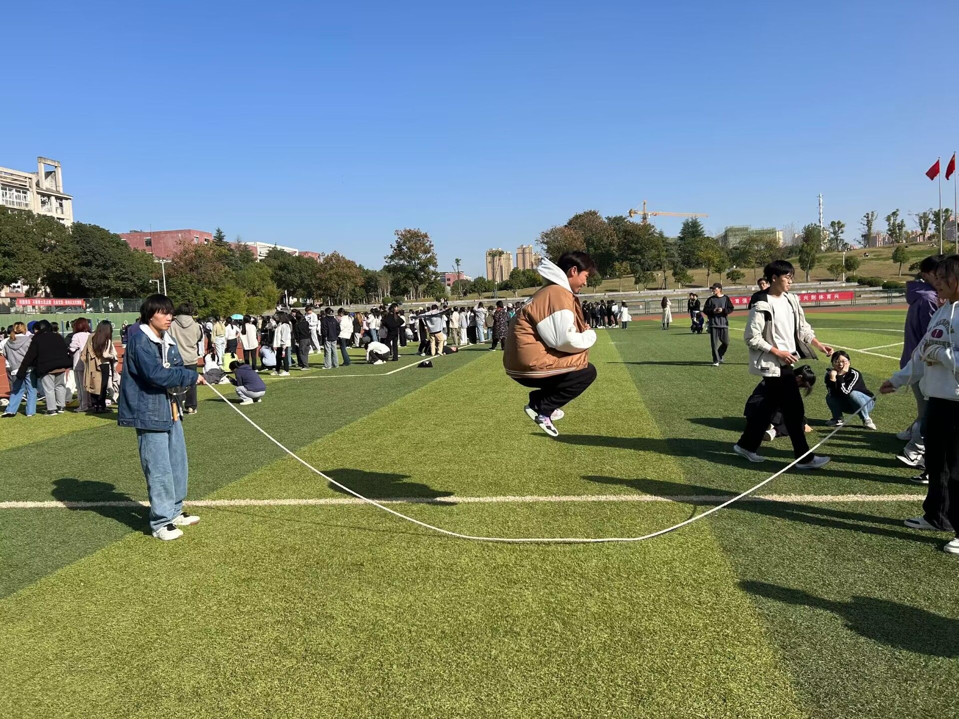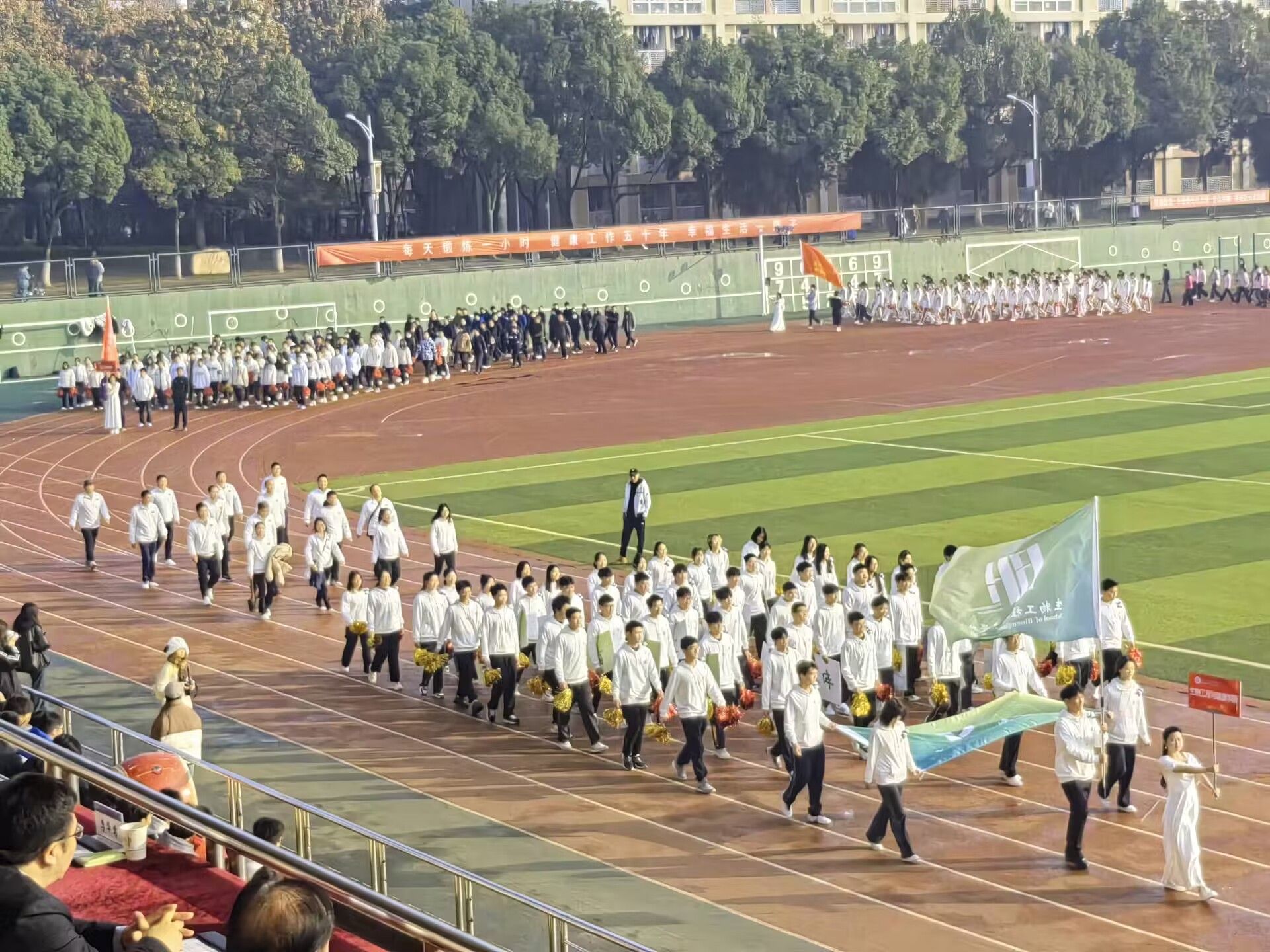 师生齐聚绿茵赛场,共同参加此次运动会。