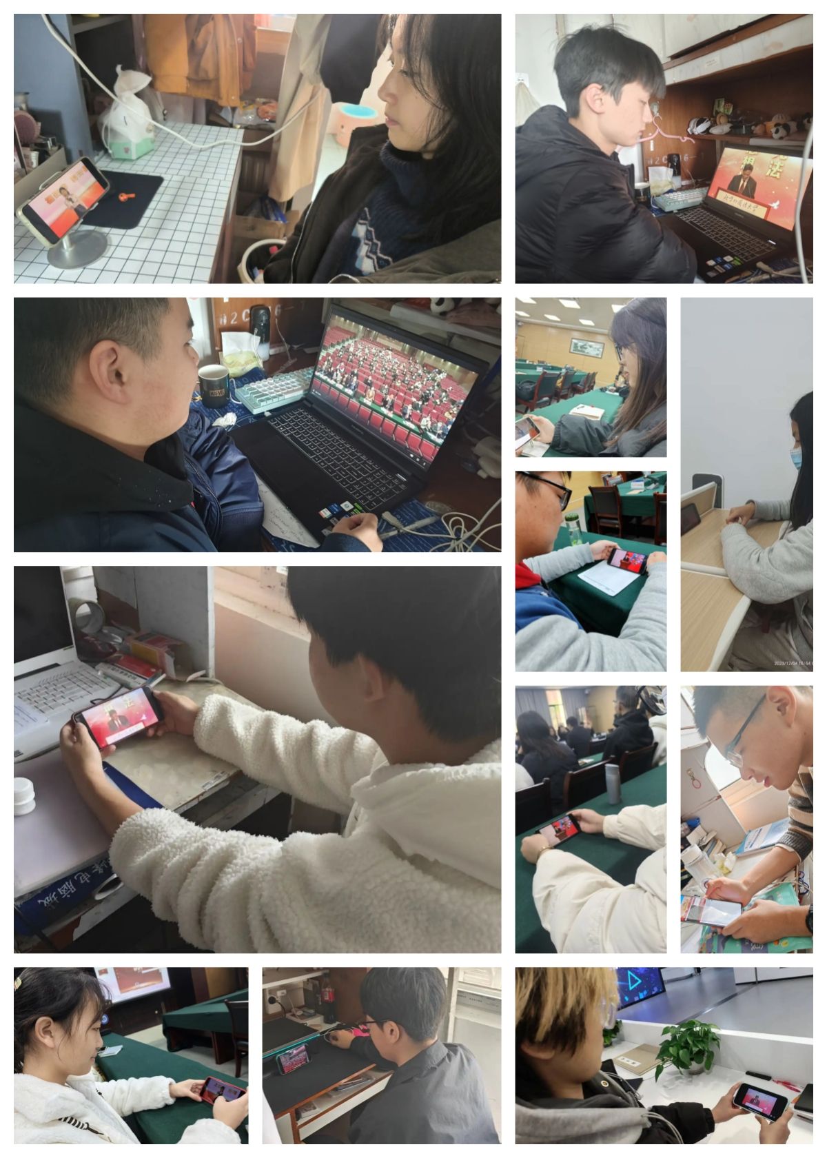 各班同学观看“晨读宪法”直播