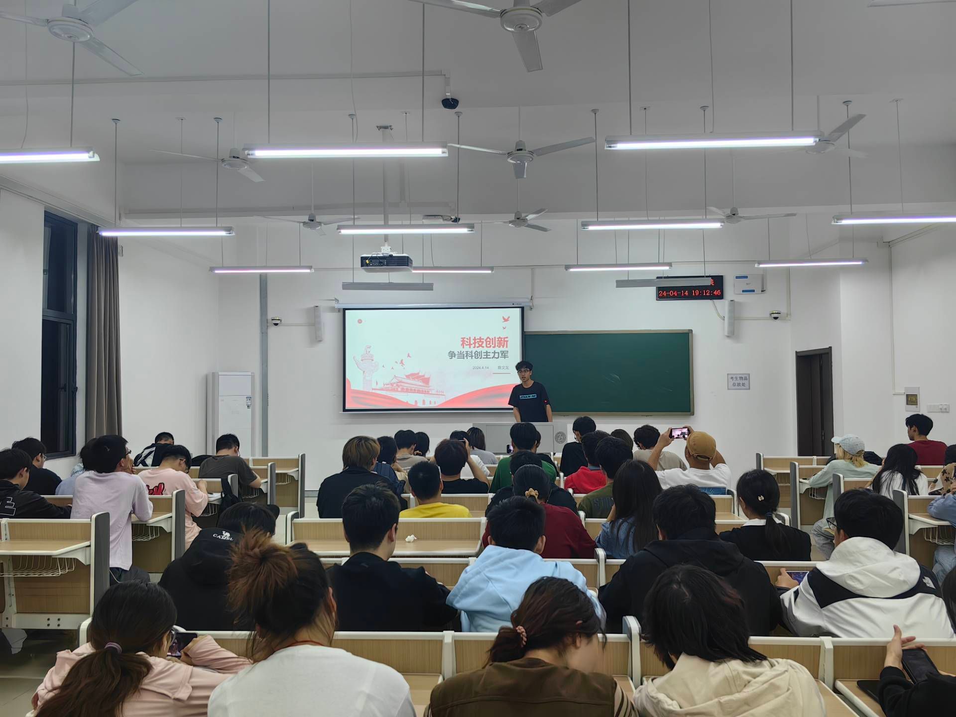 紧接着团课开始,陈文戈同学简述了我国科技创新的现状以及面临的挑战,强调了科技创新的重要性,从个人、社会、国家三个层面分析其重要影响。他希望同学们增强科技创新意识,积极响应国家号召,主动参与科研活动,为推动太阳城娱乐城