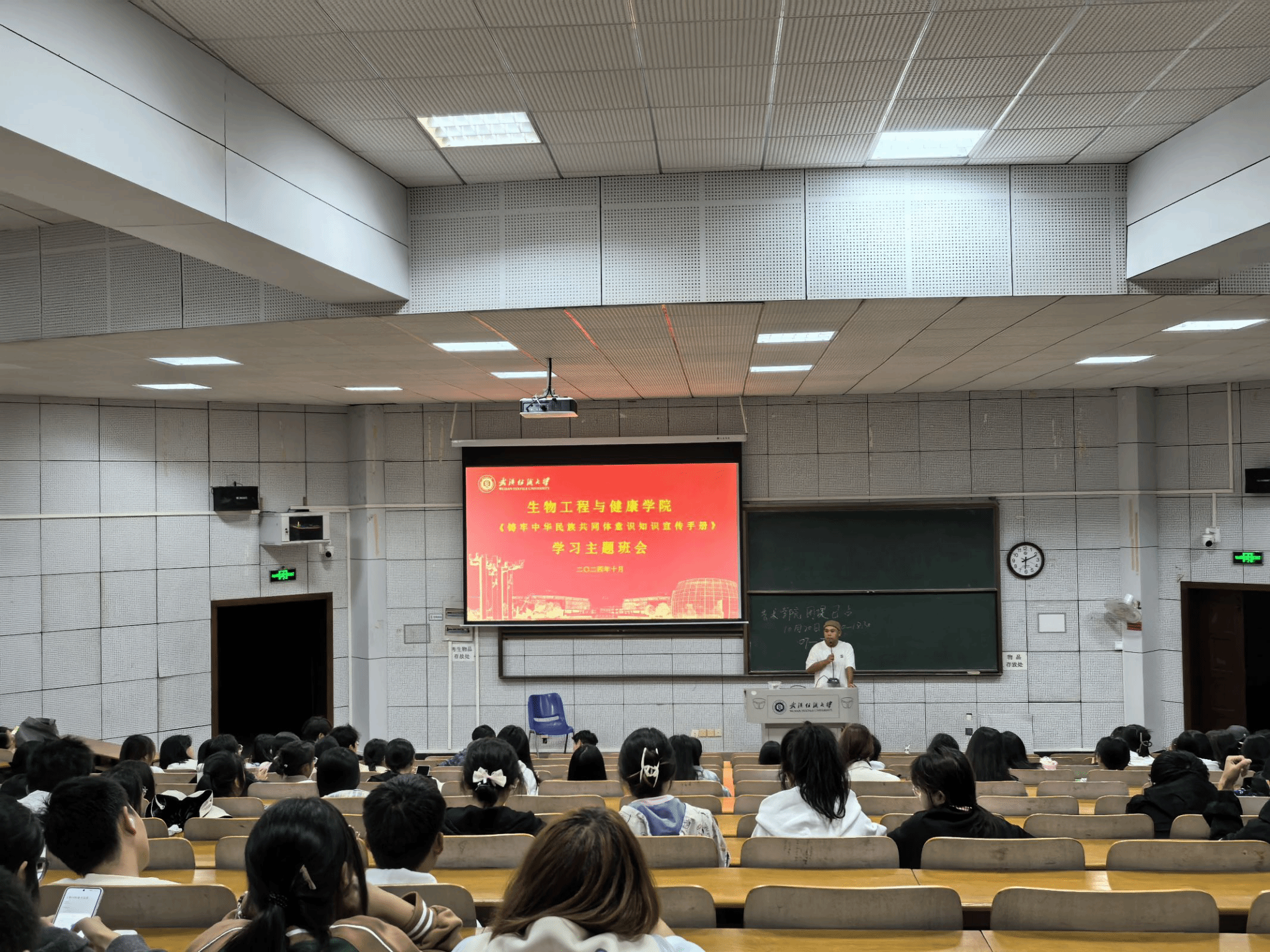 于7-T102教室召开《铸牢中华民族共同体意识知识宣传手册》学习主题班会,大会由朱一雷老师主持,全体大二学生共同参与。
