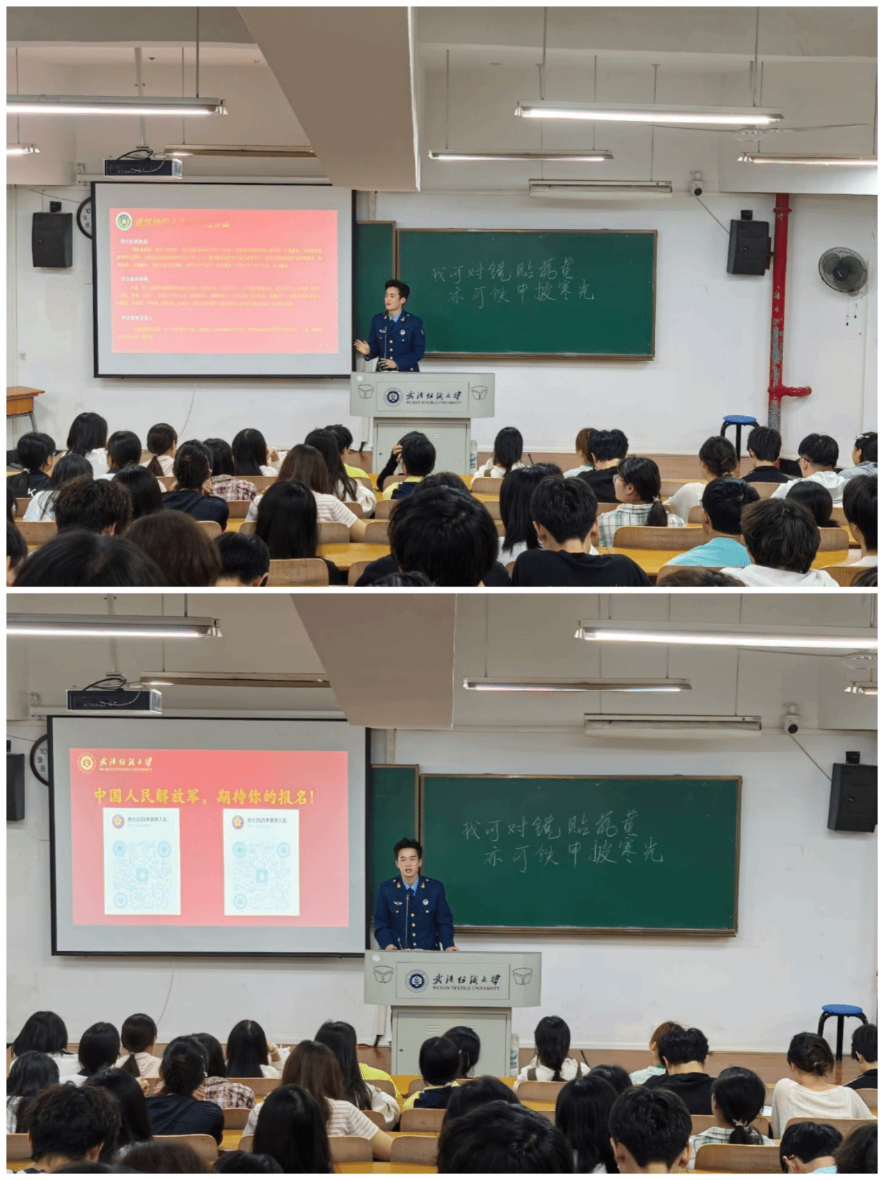 优秀退役士兵金祖东同学开展“2025年秋季征兵宣传”朋辈分享会。这位戎装归来的青年榜样,从"初心选择""行前准备""军旅淬炼"三个维度讲述迷彩青春:通过亲历的战术演练、战友情谊、荣誉时刻,生动诠释军营是重塑品格的熔炉;特别寄语女同学"我辈青年既可对镜贴花黄,亦能铁甲披寒光",鼓励打破性别刻板印象;现场更开通"戎装成长档案"服务,承诺为每位应征同学记录入伍宣誓、授衔仪式等珍贵影像。有意携笔从戎者,请即刻扫码加入"征兵入伍交流群",让这位"退伍不褪色"的学长成为你军旅梦的引路人。
