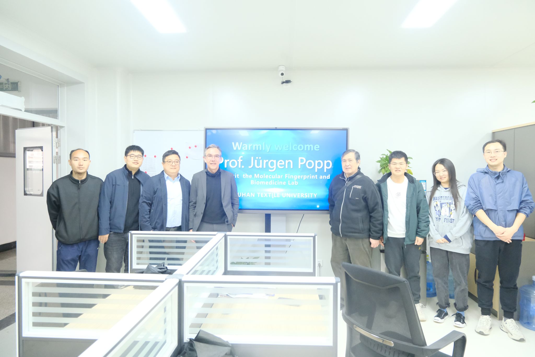 报告结束后,Jürgen Popp教授受邀参观沈爱国教授“分子指纹与生物医学实验室”,课题组师生向Jürgen Popp教授热情介绍了实验室仪器设备,并就各自研究课题与Popp进行了交流。