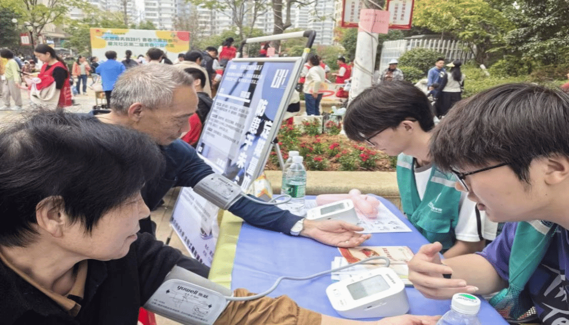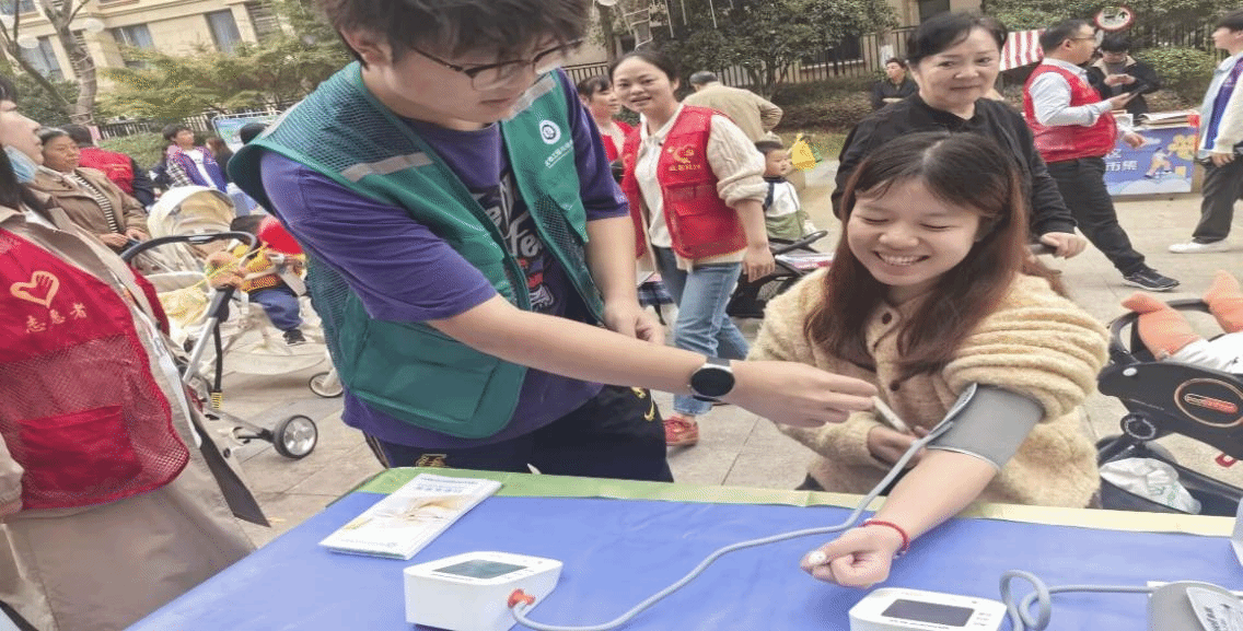 的摊位吸引了众多居民,志愿者们科普健康知识,免费测量血压,得到居民好评。志愿者贴心地帮助王大爷测量血压,并提醒王大爷:“您这血压有点高呀,平时要注意清淡饮食和进行适量的锻炼”,王大爷幸福地笑道:“谢谢你们的提醒啊!”在活动期间,参与者们纷纷表示学到了很多以前不知道的健康知识。