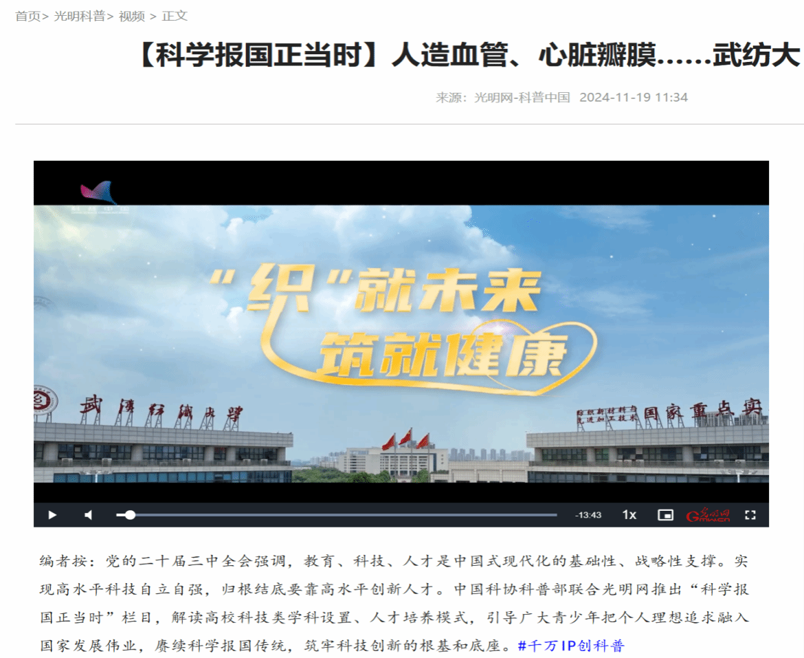 医工交叉特色办学成果受到光明网《科学报国正当时》栏目专题报道。