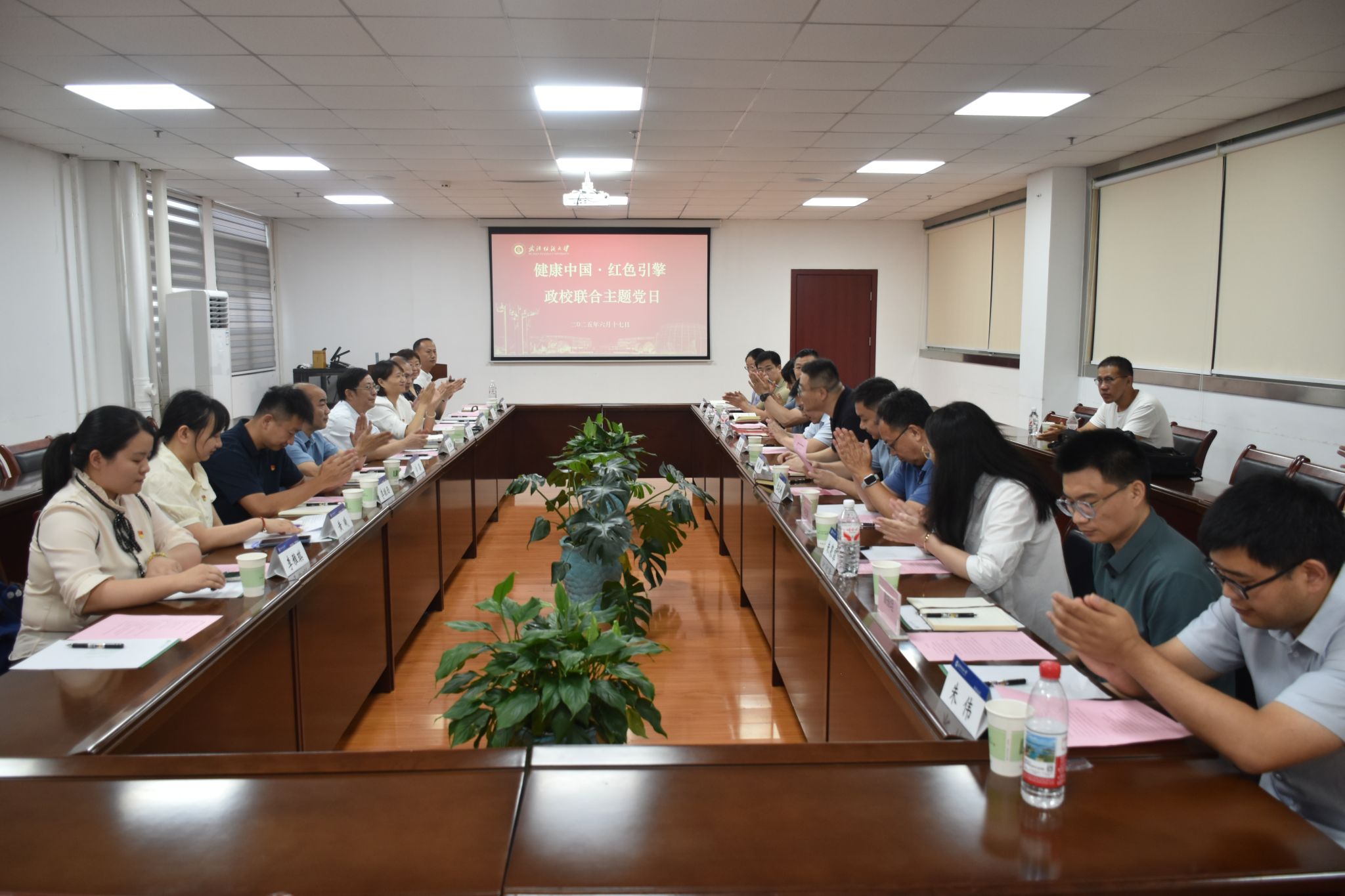 直属党支部联合举办的“健康中国·红色引擎”政校联合主题党日暨医工融合座谈会在武汉纺织大学阳光校区成功举行。市卫健委二级巡视员彭厚鹏、武汉纺织大学副校长王栋及三方单位党员骨干、专家学者20余人参会。活动以“党建红”引领“科技蓝”为主线,旨在通过党建与业务的深度融合,探索医工交叉创新的新路径,为健康中国战略在武汉的落地生根贡献力量。